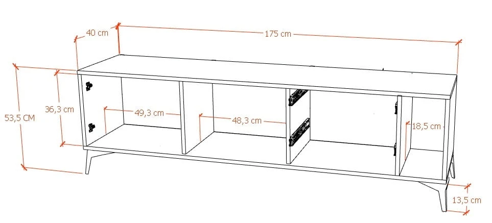 Dwie głębokie szuflady oraz duża wnęka za drzwiczkami z łatwością pomieszczą wszystkie niezbędne rzeczy – od dokumentów po sprzęt RTV. A wszystko to wykonane z trwałej płyty meblowej o grubości aż 18 mm – podczas gdy większość sklepów oferuje tylko 16 mm. To gwarancja wytrzymałości na lata!