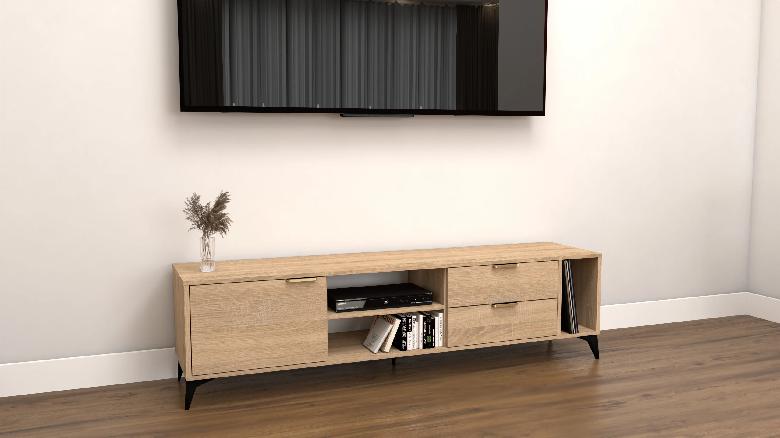 Dwie głębokie szuflady oraz duża wnęka za drzwiczkami z łatwością pomieszczą wszystkie niezbędne rzeczy – od dokumentów po sprzęt RTV. A wszystko to wykonane z trwałej płyty meblowej o grubości aż 18 mm – podczas gdy większość sklepów oferuje tylko 16 mm. To gwarancja wytrzymałości na lata!