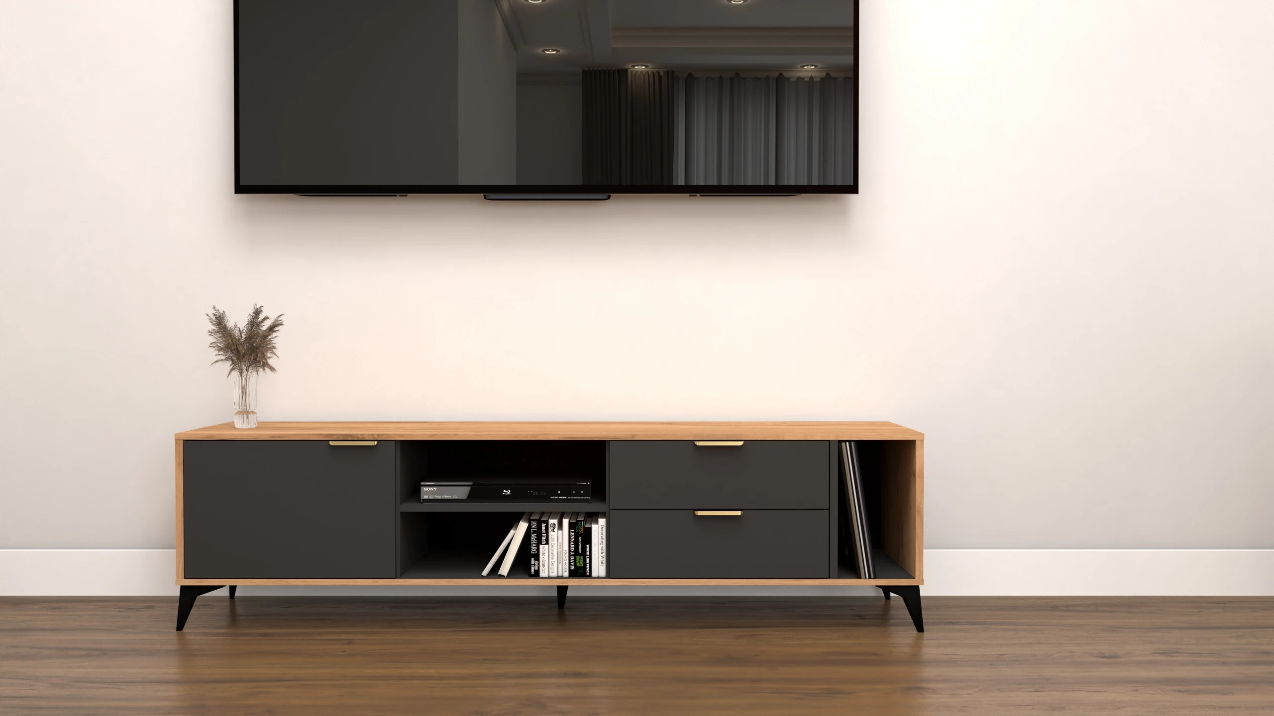 Szafka RTV Velmi II sonoma, antracyt 175cm Glamour złoto